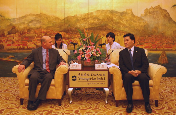 夏耕對客人的來訪表示歡迎,他說,2008年奧運會帆船項目比賽將在青島舉行,雙方可以在城市建設(shè)和奧運賽事承辦等方面交流經(jīng)驗,加強合作,同時也希望雙方能在經(jīng)貿(mào)等領(lǐng)域開展更廣泛合作。