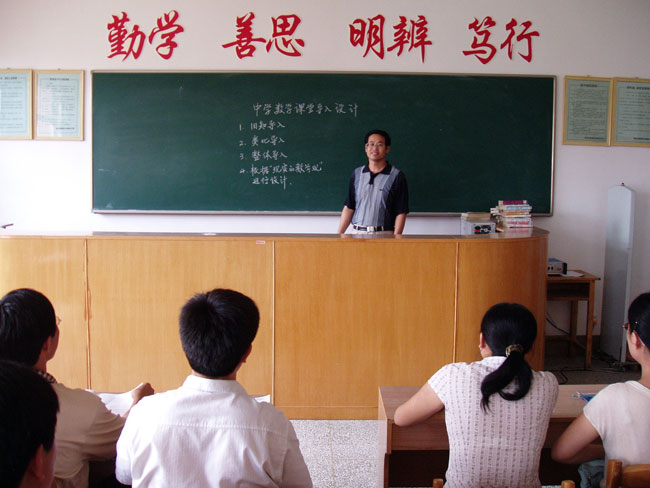 平度一中數(shù)學(xué)組的年輕教師,談起于老師的無私幫帶,都感激至深。學(xué)校領(lǐng)導(dǎo)高度重視對青年教師的培養(yǎng),于振璽也義不容辭地做起了傳幫帶的工作。雖然自己身為市數(shù)學(xué)學(xué)科帶頭人、高中段教學(xué)名師,要經(jīng)常舉行平度市、青島市公開課、觀摩課和各種教法講座,忙得不得了。他歡迎青年教師隨時推門聽他的課,接著一起評課,然后他再去聽青年教師的課,再一起坐下來談優(yōu)點,議不足。數(shù)學(xué)組在他這匹“老黃?!钡膸酉拢闪艘还衫K,形成了一個團(tuán)結(jié)協(xié)作的戰(zhàn)斗集體,一大批青年教師也迅速成長起來,成為教學(xué)骨干。他積極進(jìn)行教學(xué)改革,精心鉆研教學(xué)藝術(shù)。他所撰寫的教育教學(xué)論文,有多篇在教育教學(xué)刊物上發(fā)表或獲平度市、青島市教育教學(xué)論文評選一、二等獎。他參與和承擔(dān)各級立項課題的研究工作,國家、省級課題“平度一中實施素質(zhì)教育的內(nèi)容和途徑的研究”、“運用嘗試法教學(xué)理論高課堂教學(xué)效率研究”、“信息技術(shù)與學(xué)科整合研究”,都留下了他的足跡和汗水,有關(guān)研究成果一次獲山東省教育科研成果一等獎、多次獲青島市優(yōu)秀科研成果獎。于老師曾說過這么一席話:教什么書,育什么人,必須要有一種境界,自己必須先有一種“為天地立心、為生民立道、為萬事開太平”的強(qiáng)烈使命感,然后你才能去培養(yǎng)優(yōu)秀的、有社會責(zé)任感、有世界眼光的人,也只有這樣,才能稱得上是落實了“為社會負(fù)責(zé),為學(xué)生終身發(fā)展負(fù)責(zé)”的辦學(xué)理念……