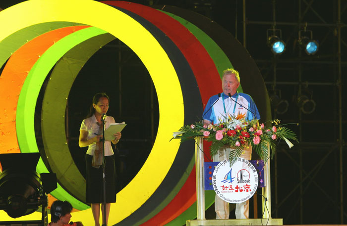 國際帆聯(lián)主席約倫·彼得森致辭。他說,我非常高興能有機會在美麗的城市中國青島歡迎參加2008年奧帆賽前最后一次測試賽的全體運動員、教練員、官員、賽事組織者和志愿者們。隨著2008年北京奧運會的日益臨近,今天的開幕式標(biāo)志著一個重要時刻的來臨。好運北京2007青島國際帆船賽匯聚了包括奧運和世界冠軍在內(nèi)的眾多帆船運動員,能成為你們當(dāng)中的一員我感到非常榮幸。