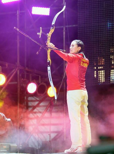 19時35分,市委副書記、市長夏耕,國際奧委會委員、香港奧委會會長霍震霆,2008奧運會射箭冠軍、青島籍運動員張娟娟,上海實業(yè)(集團)有限公司執(zhí)行董事馬成木梁、青島啤酒集團董事長金志國一起走上中心舞臺,共同見證第18屆青島國際啤酒節(jié)開幕的盛況。在熱烈的歡呼聲中,夏耕宣布:第18屆青島國際啤酒節(jié)開幕!隨即,身著奧運比賽服的張娟娟拉開手中的彎弓,只聽“嗖”的一聲,三道流光溢彩的焰火飛向夜空,交匯成一束金光,然后向舞臺中央的啤酒桶直射而去——瞬間,金色的青島啤酒噴涌而出———第18屆青島國際啤酒節(jié)的第一桶啤酒,正式開啟了!頓時,全場歡聲雷動,無數(shù)的禮花騰空而起,將啤酒城的夜空點綴成一個絢麗繽紛的世界。
