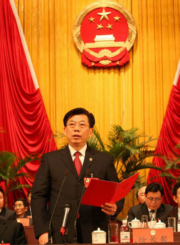 在與會代表的熱烈掌聲中,市長夏耕代表青島市人民政府作工作報告。報告分五個部分:一、2006年工作回顧;二、2007年工作總體安排;三、堅持科學發(fā)展,加快提升經(jīng)濟發(fā)展質(zhì)量;四、堅持和諧發(fā)展,使廣大人民群眾共享發(fā)展成果;五、堅持依法行政,切實提高政府服務(wù)水平。