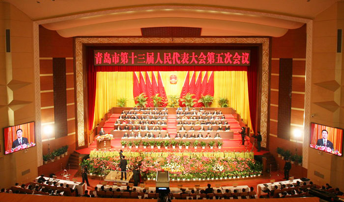 上午9時,主席團常務(wù)主席、市人大常委會主任徐長聚宣布青島市第十三屆人民代表大會第五次會議開幕,雄壯的國歌聲響徹會場。