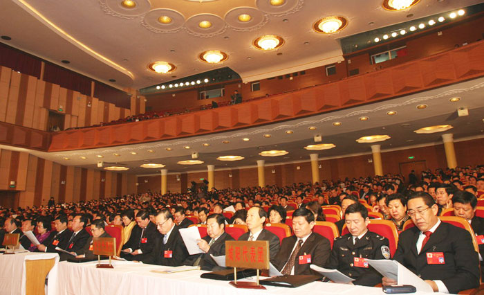 昨日的市人民會堂鮮花錦簇,主席臺幕墻正中高懸著金光奪目的中華人民共和國國徽,兩旁排列著10面鮮艷的紅旗,氣氛莊嚴喜慶。