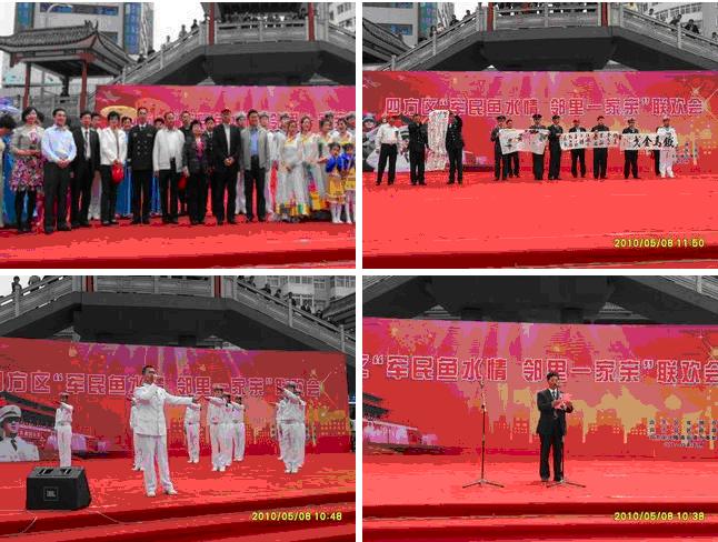 2010年5月8日,由區(qū)雙擁辦和興隆路街道辦事處共同籌劃“軍民魚(yú)水情,鄰里一家親”文藝演出活動(dòng)在四方區(qū)海云庵廣場(chǎng)隆重舉行。演出節(jié)目包括歌曲獨(dú)唱、舞蹈、相聲、小品等各種形式,部隊(duì)官兵和軍民載歌載舞,加強(qiáng)了軍民之間的文化交流,增進(jìn)了軍民間的感情,充分展現(xiàn)了四方區(qū)軍民軍民魚(yú)水情深,軍地雙方“同呼吸、共命運(yùn)、心連心”的雙擁工作大好形勢(shì)。