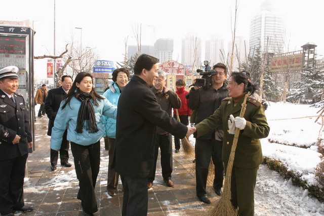 市長(zhǎng)看望掃雪軍人