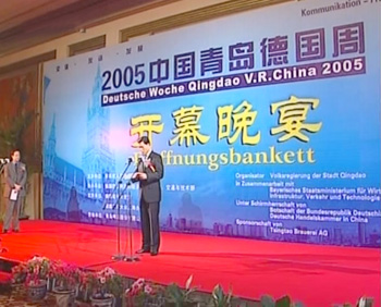 青島電視臺(tái)訊 前天晚上,我市在香格里拉大飯店舉行盛大酒會(huì),隆重慶祝2005中國(guó)青島德國(guó)周開(kāi)幕。