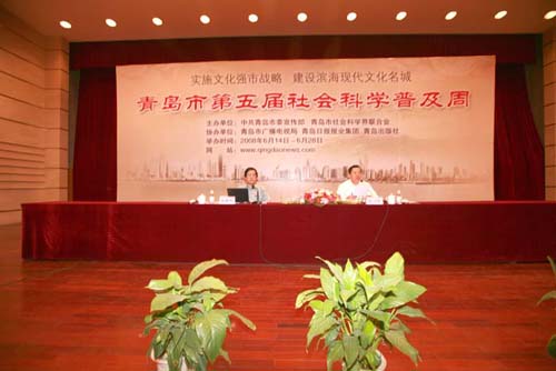 2008年6月14日,青島市第五屆社會科學(xué)普及周開幕式結(jié)束后,中國社會科學(xué)院文化研究中心副主任張曉明研究員作了題為《認(rèn)識經(jīng)濟(jì)文化發(fā)展的不平衡規(guī)律,科學(xué)制定文化發(fā)展戰(zhàn)略》的主題報告。