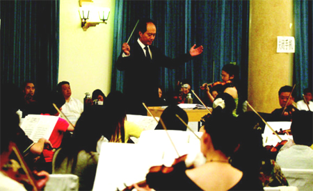 “每天9點排練,團員8點半就基本到齊。”樂團副團長熊輝告訴記者,為了能夠圓滿完成協(xié)奏任務(wù),樂團的新成員們卯足了精神、下足了苦功,“每天四個小時的排練緊張而又認真”。