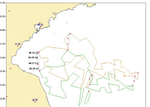 根據(jù)市滸苔災(zāi)害處置應(yīng)急指揮部辦公室監(jiān)視監(jiān)測組16日的通報,北海分局繼續(xù)利用衛(wèi)星、飛機和船舶等方式對滸苔進行監(jiān)視監(jiān)測。由于部分海域受云層影響,綜合2009年6月14日和6月15日的衛(wèi)星監(jiān)測結(jié)果,滸苔分布面積約19000平方公里,覆蓋面積約140平方公里,分布范圍在北緯33°17'-35°15',東經(jīng)120°20'-124°之間。