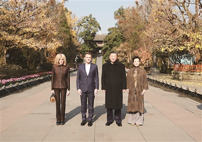 12月5日,國(guó)家主席習(xí)近平在四川省成都市都江堰同法國(guó)總統(tǒng)馬克龍進(jìn)行友好交流。這是習(xí)近平和夫人彭麗媛同馬克龍夫婦合影。 新華社照片