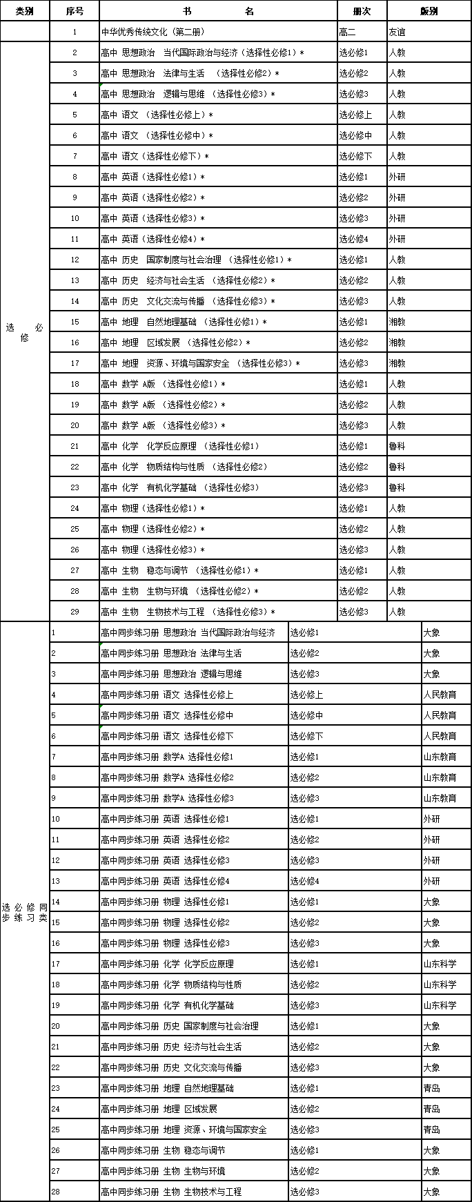 青島市2022學(xué)年秋季普通高中教育教學(xué)用書目錄 (根據(jù)2017年版課程標(biāo)準(zhǔn)修訂)