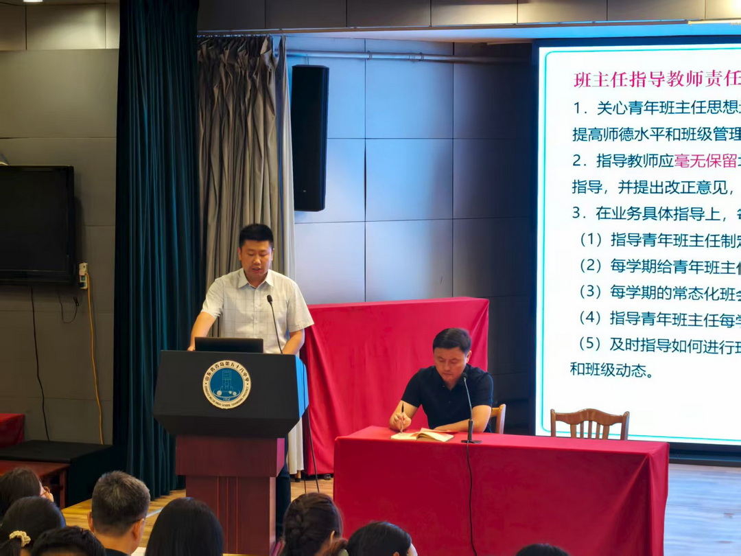 高一年級(jí)主任王麥斌宣讀了班主任業(yè)務(wù)指導(dǎo)的具體要求,明確了師徒雙方在德育工作中的職責(zé)。王主任指出,此次師徒結(jié)對(duì),簽署的不僅是一紙協(xié)議,更是一份莊嚴(yán)的承諾——于師父,意味著專業(yè)的引領(lǐng)與責(zé)任的擔(dān)當(dāng);于徒弟,則代表著教育的傳承與自身的成長(zhǎng)。展望未來(lái),王主任希望師父?jìng)兡軌騼A囊相授、不吝賜教,徒弟們則主動(dòng)求教、虛心學(xué)習(xí),期待每一位年輕班主任都能在實(shí)踐中快速成長(zhǎng),早日成為學(xué)校德育工作的中堅(jiān)力量。