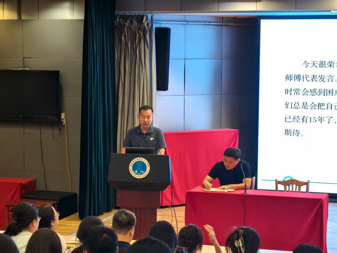新入職教師代表陳曉宇在發(fā)言中表達(dá)了對(duì)教育事業(yè)的向往與初心。她深刻認(rèn)識(shí)到教育不僅是傳遞知識(shí),更是點(diǎn)燃學(xué)生心中的自信、希望與家國(guó)情懷。她由衷感謝學(xué)校提供的師徒結(jié)對(duì)平臺(tái),并代表全體新教師鄭重承諾:將始終保持空杯心態(tài),虛心學(xué)習(xí)、多問(wèn)多練,傳承師傅們的敬業(yè)精神和嚴(yán)謹(jǐn)作風(fēng),努力早日成長(zhǎng)為讓學(xué)生喜愛、家長(zhǎng)放心、學(xué)校滿意的人民教師。