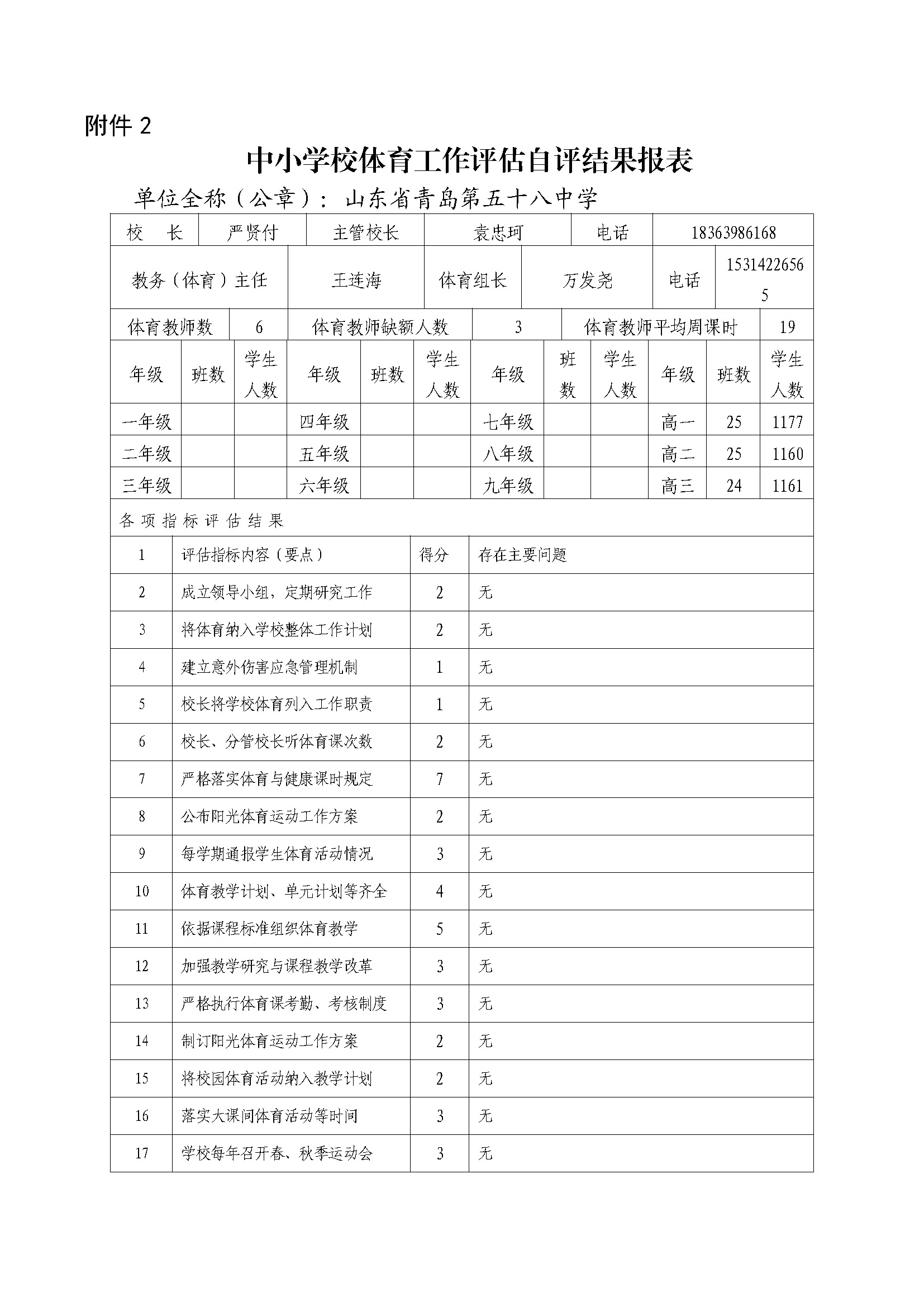 青島五十八中2025年中小學(xué)校體育評(píng)估自評(píng)結(jié)果報(bào)表
