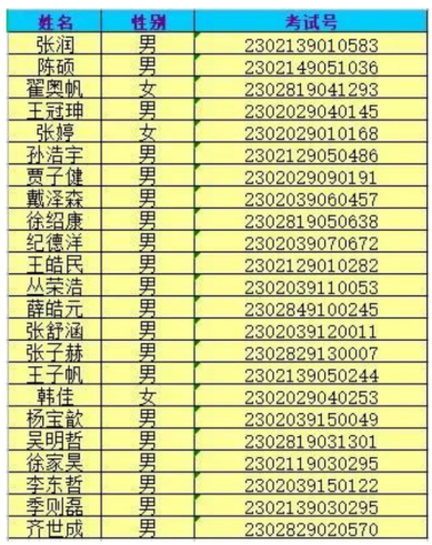 祝賀以下同學(xué)考入青島電子學(xué)校。請被錄取的同學(xué)于7月26日(周三)上午9:00到市北校區(qū)(市北區(qū)臺東一路118號)報到并領(lǐng)取錄取通知書,報到詳情見本公眾號發(fā)布的《青島電子學(xué)校2023級報到須知(職普融通、三二連讀五年貫通和職業(yè)中專)》。