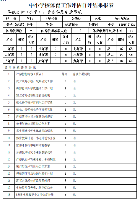 青島華夏職業(yè)學(xué)校2025年體育評(píng)估自評(píng)結(jié)果報(bào)表