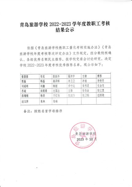 青島旅游學(xué)校2022-2023學(xué)年考核結(jié)果公示