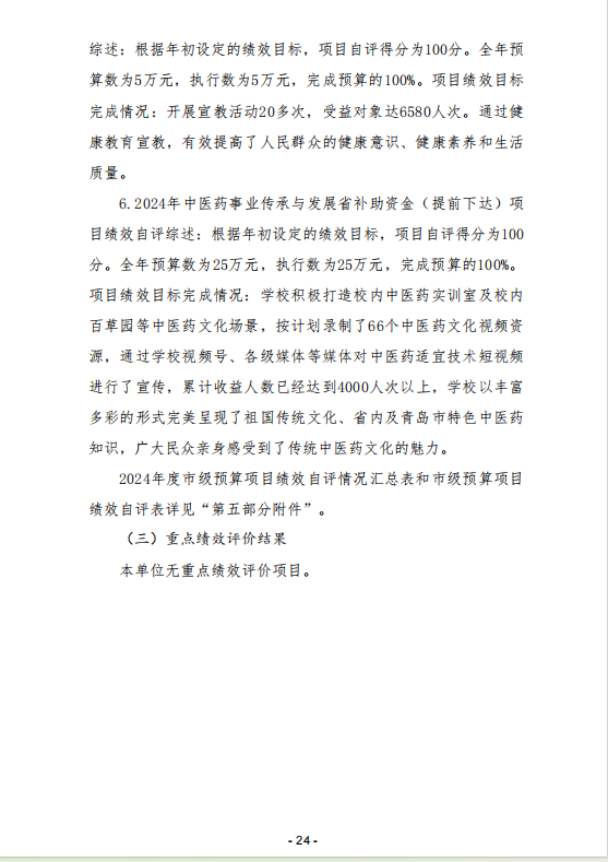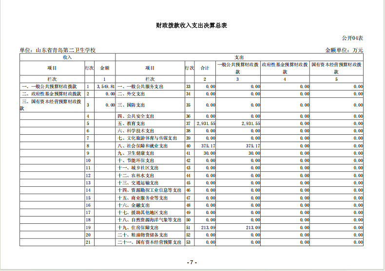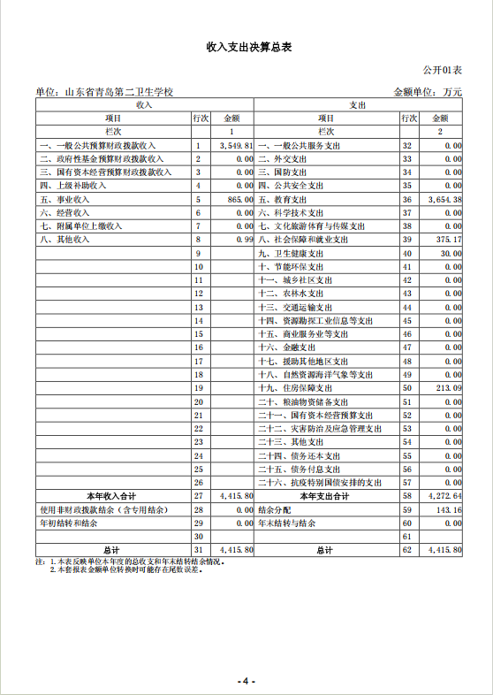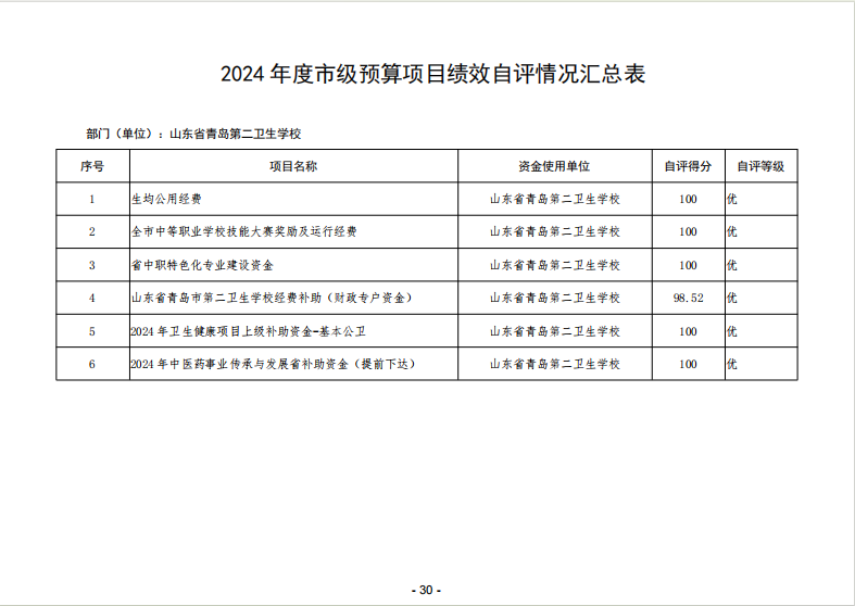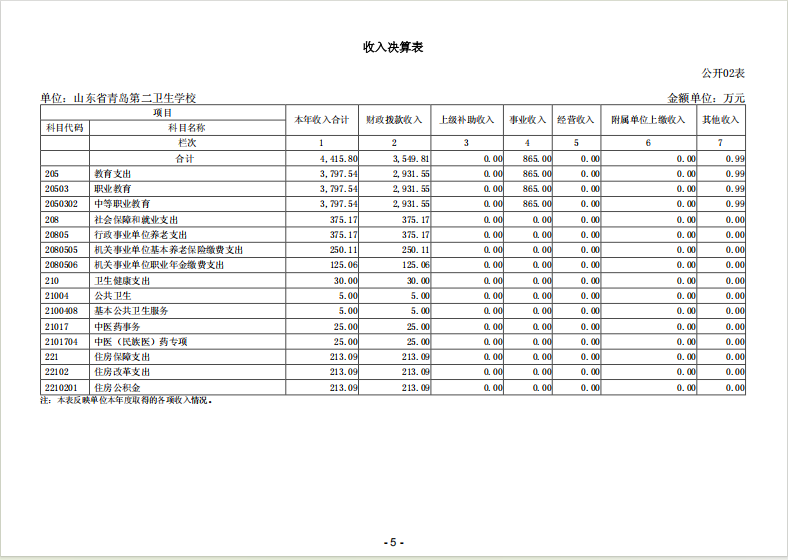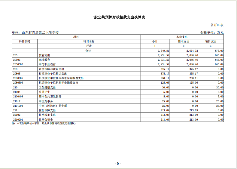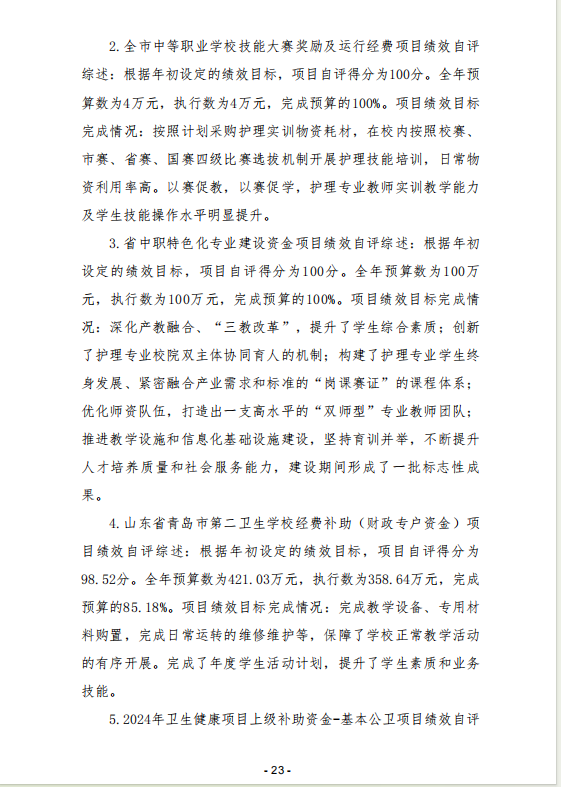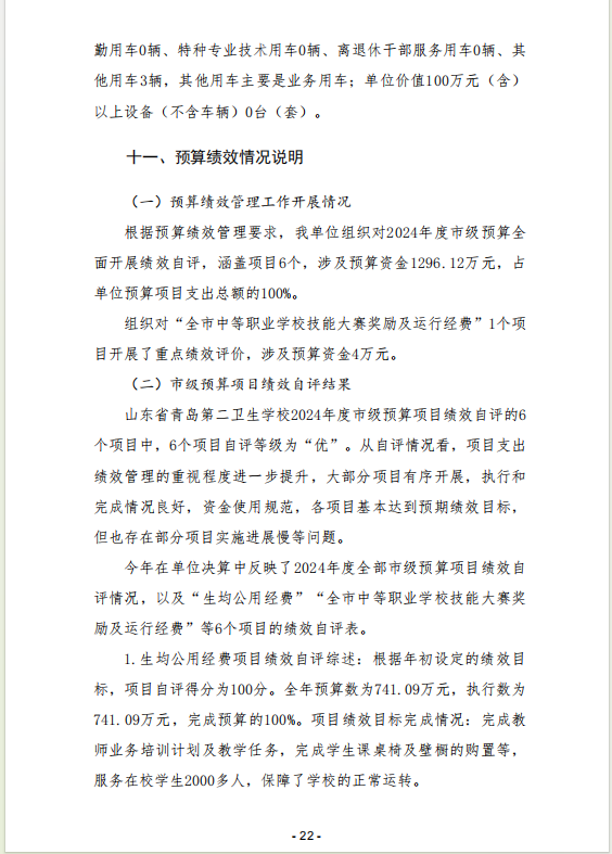 山東省青島第二衛(wèi)生學(xué)校 2024年度單位決算