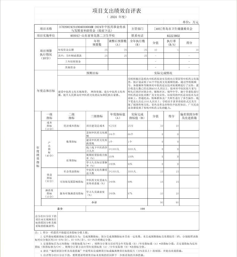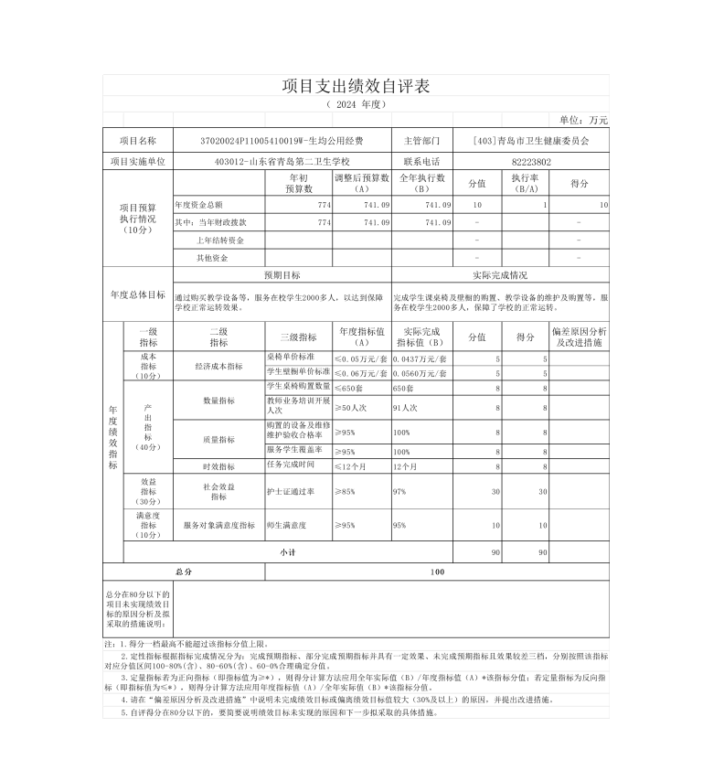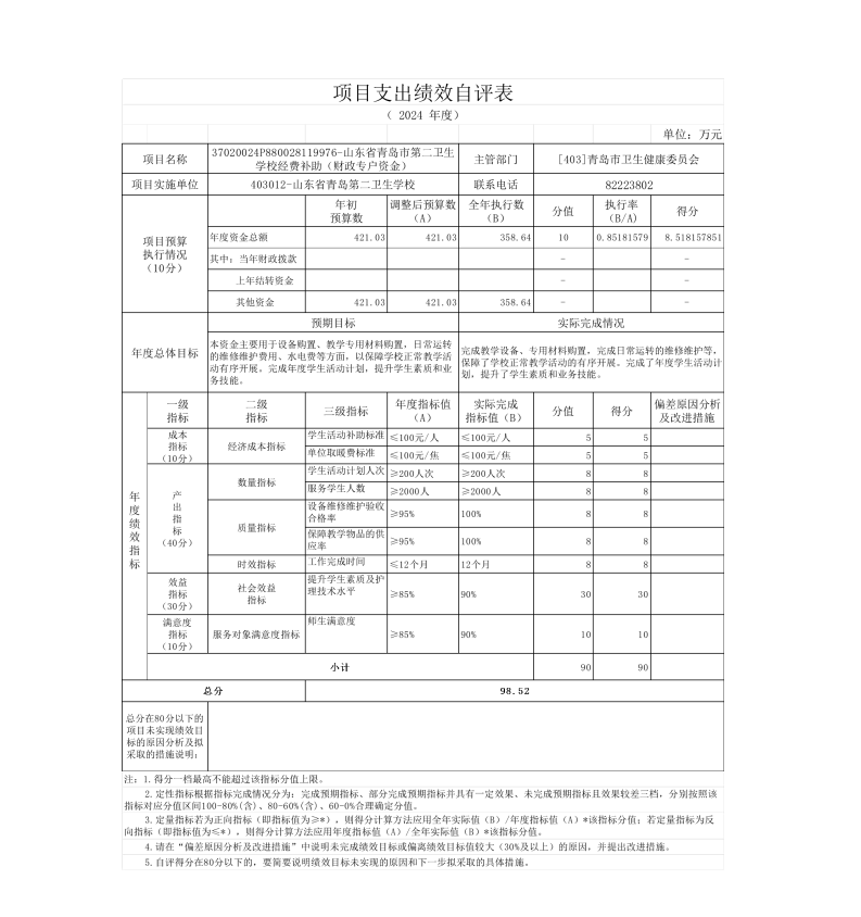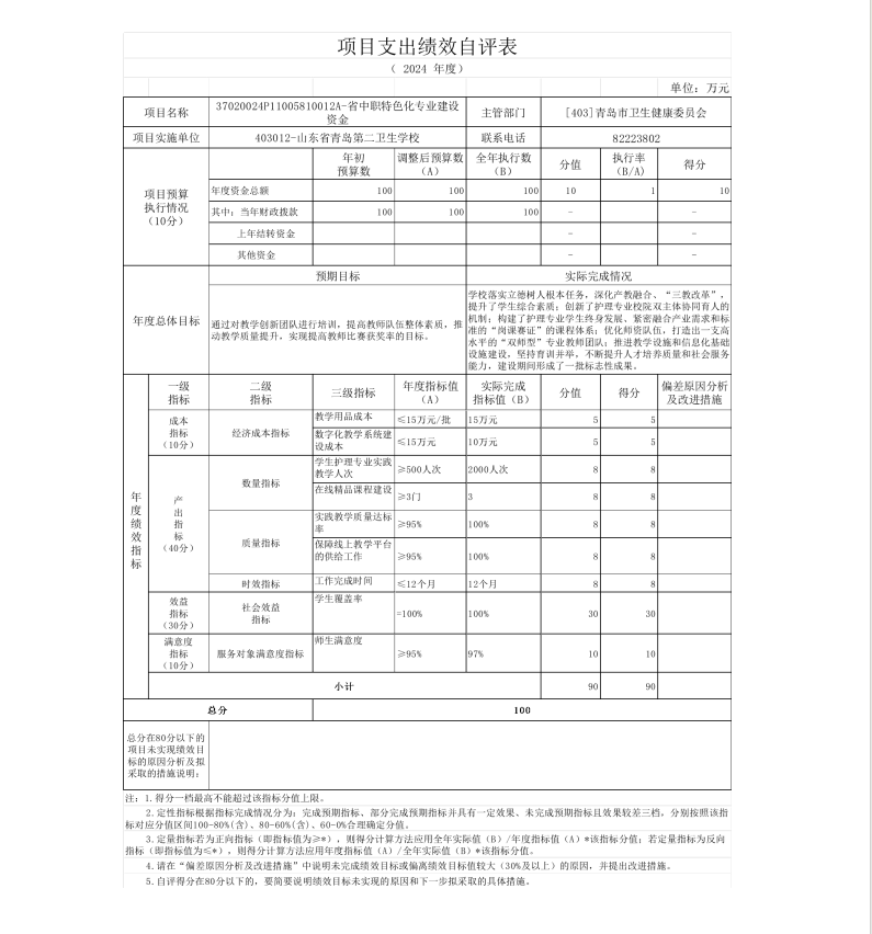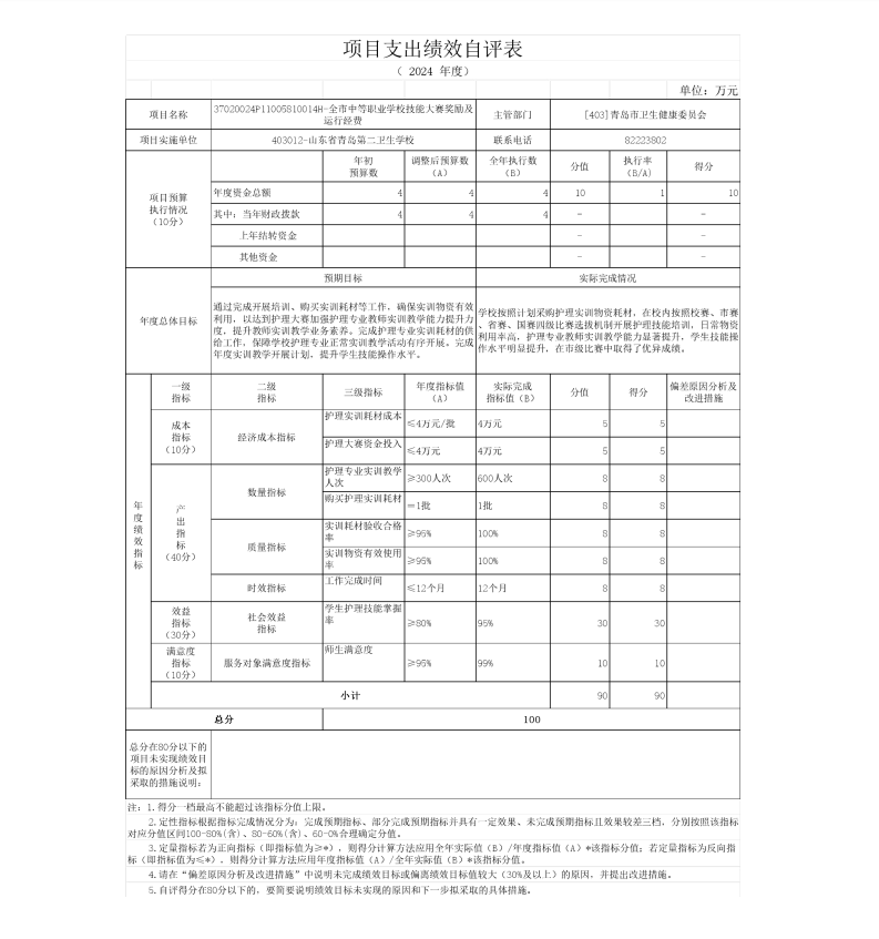 山東省青島第二衛(wèi)生學(xué)校 2024年度單位決算