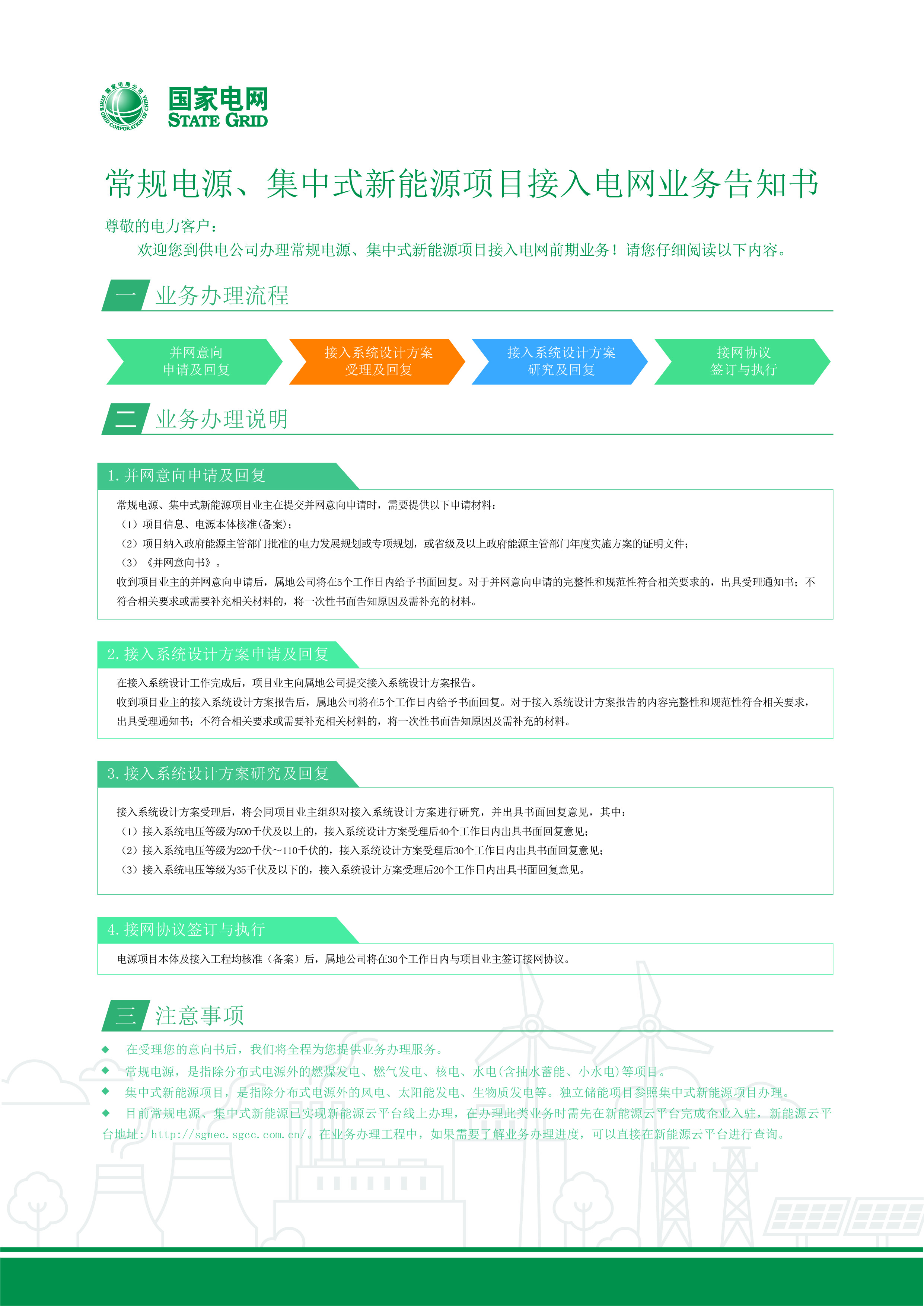 常規(guī)電源、集中式新能源項目接入電網(wǎng)業(yè)務告知書