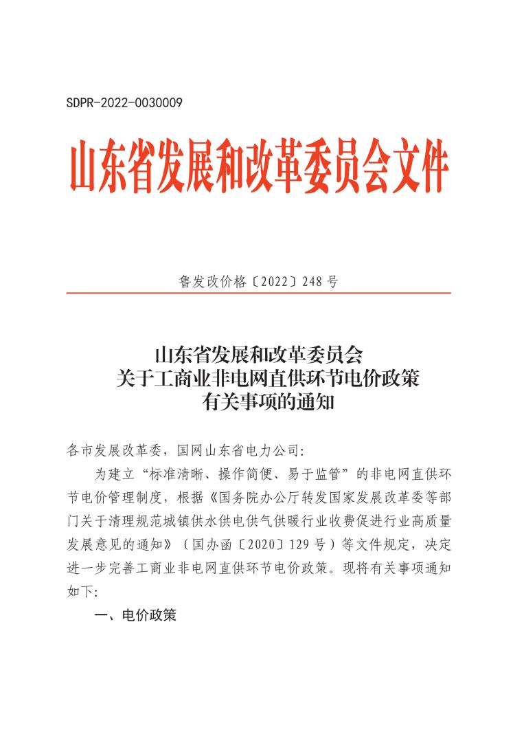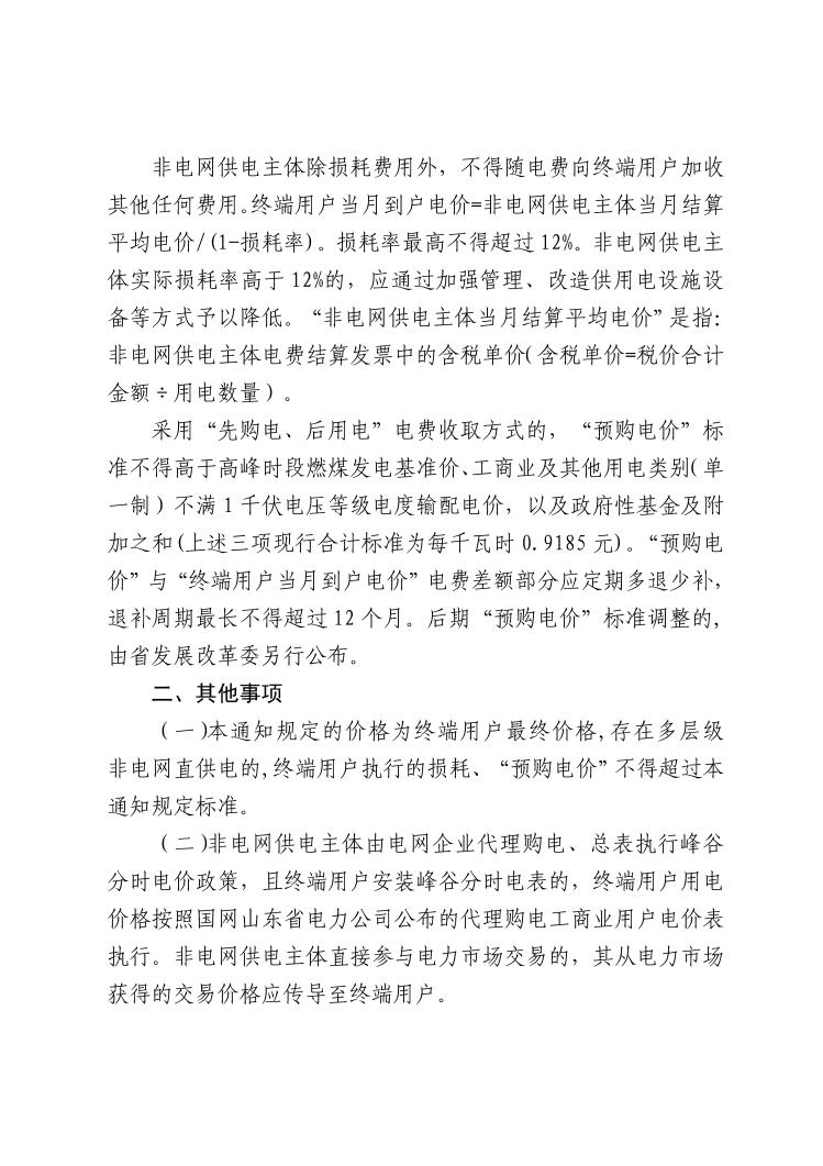 山東省發(fā)展和改革委員會關于工商業(yè)非電網直供環(huán)節(jié)電價政策有關事項的通知.pdf