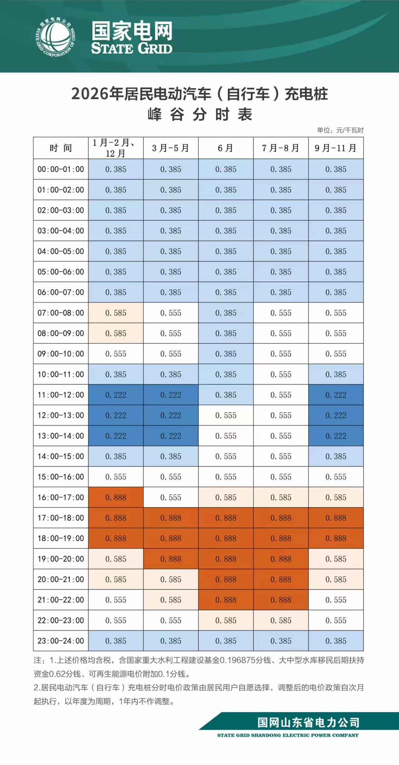 2026年居民電動(dòng)汽車(chē)(自行車(chē))充電樁峰谷分時(shí)表