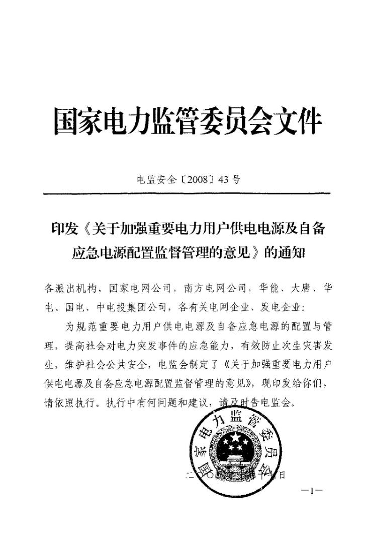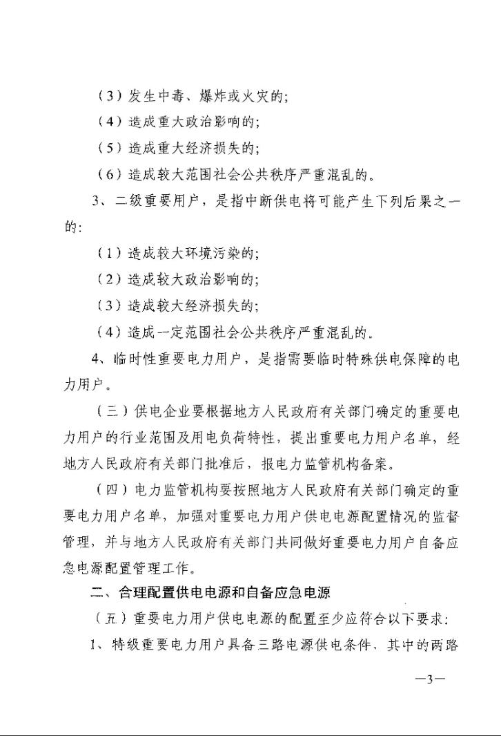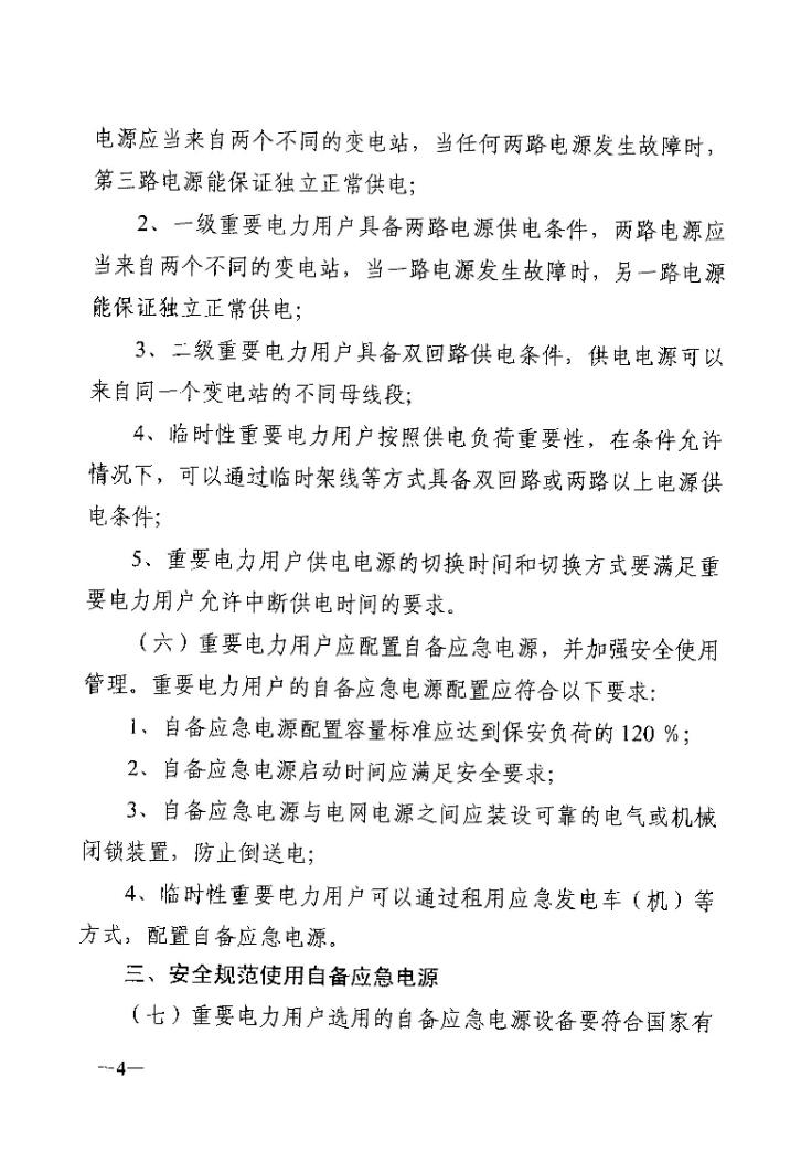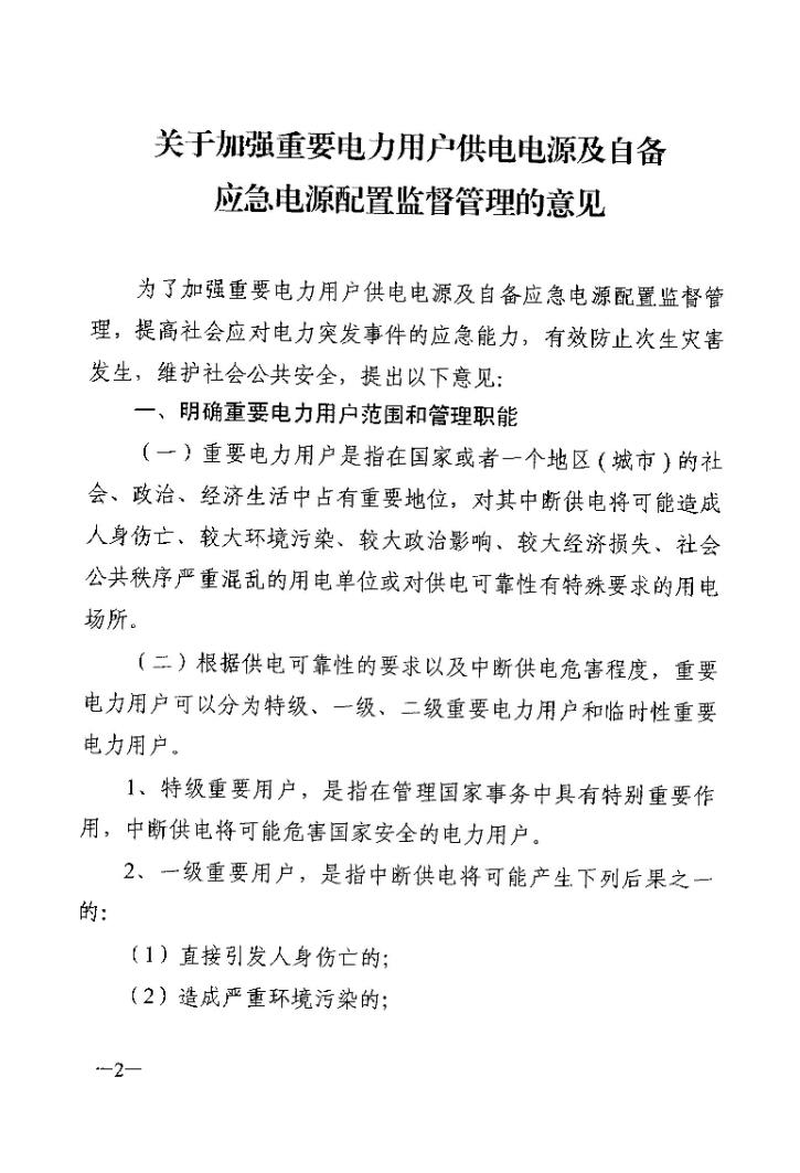 關(guān)于加強重要電力用戶供電電源及自備應(yīng)急電源配置監(jiān)督管理的意見