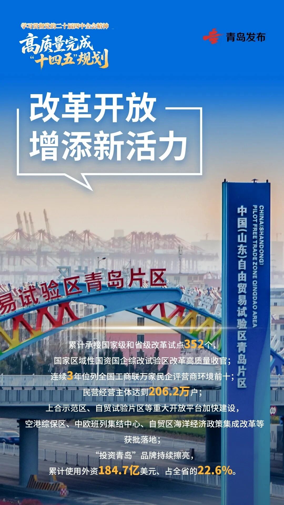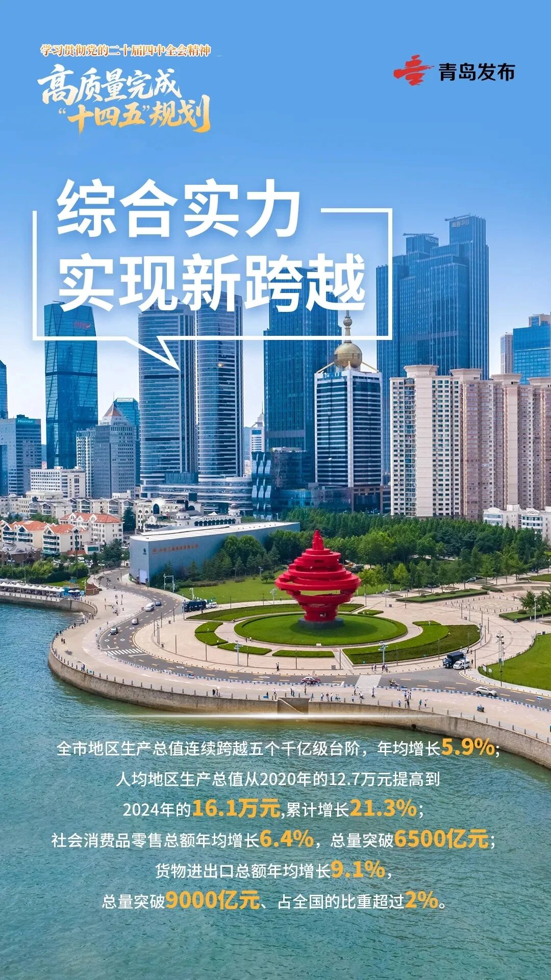 展望“十五五”,將深入學(xué)習(xí)貫徹黨的二十屆四中全會(huì)精神,科學(xué)謀劃青島“十五五”發(fā)展藍(lán)圖,不斷開創(chuàng)現(xiàn)代化國(guó)際大都市建設(shè)新局面,奮力譜寫中國(guó)式現(xiàn)代化青島實(shí)踐新篇章。