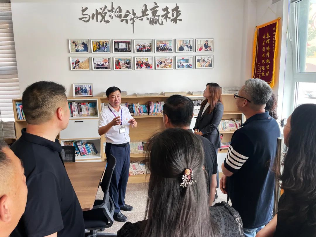 受邀代表一行在嶗山區(qū)東泰小學(xué)校長(zhǎng)的帶領(lǐng)下,參觀了餐廳、家委會(huì)辦公室、名師工作室、閱覽室、剪紙工作坊等教育教學(xué)場(chǎng)所,了解非遺剪紙、項(xiàng)目式學(xué)習(xí)、AI數(shù)智化教學(xué)特色課程,全景式感受到學(xué)校教育教學(xué)事業(yè)的發(fā)展軌跡和日新月異的變化,看到了鄉(xiāng)村教育從‘追趕者’到‘破局者’的蛻變。
