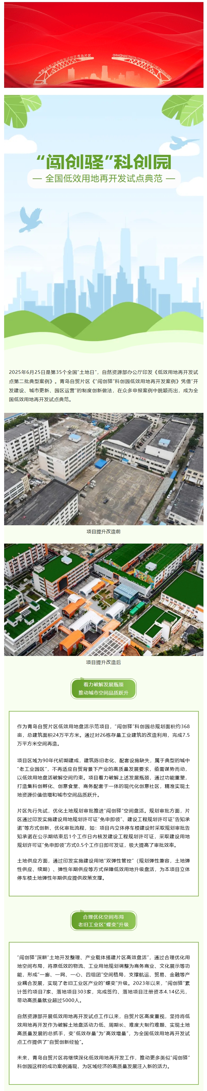 青島自貿(mào)片區(qū)“闖創(chuàng)驛”科創(chuàng)園低效用地再開發(fā)案例入選全國典型案例