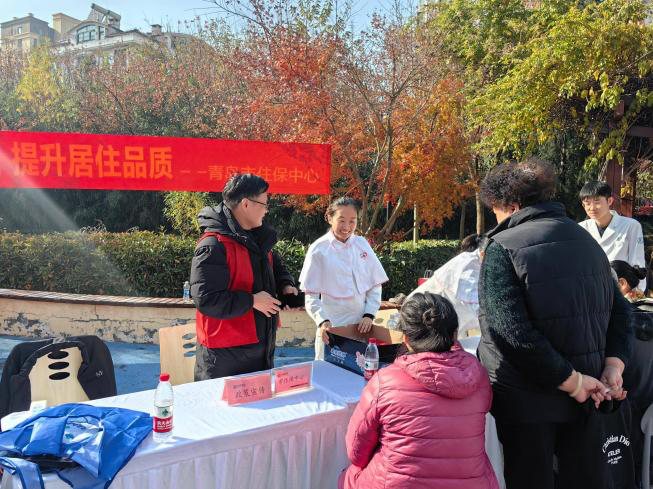 本次活動特別邀請了青醫(yī)附院的志愿者組建義診團隊。志愿者們在現(xiàn)場為住戶提供血壓測量、血糖檢測及健康保健咨詢服務(wù),同時針對行動不便的獨居老人,開展上門義診服務(wù),讓老人們足不出戶就能及時了解自身健康狀況,感受到多方的貼心關(guān)懷。