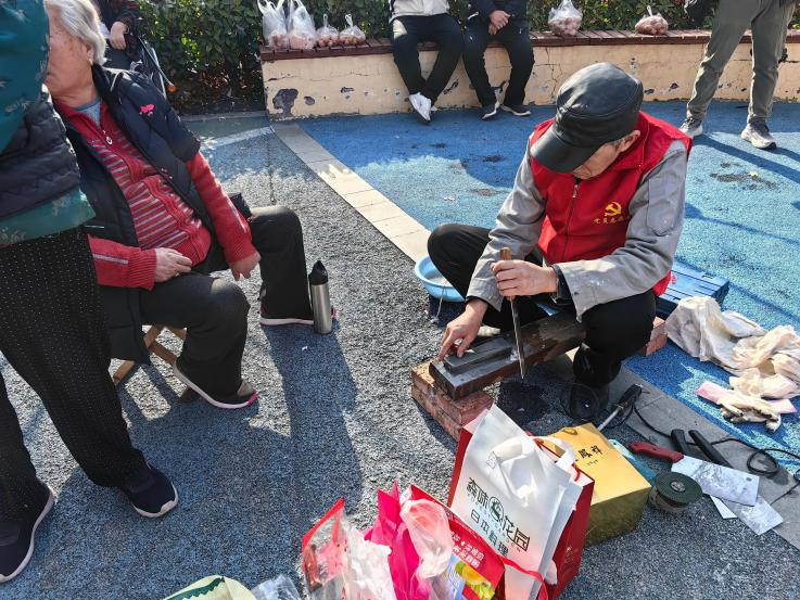為切實解決居民日常生活中的實際需求,活動設(shè)置了多個便民服務(wù)攤位。便民維修區(qū),來自各單位的志愿者組成維修隊伍,免費為住戶檢修、維修各類小家電,用專業(yè)技能為居民排憂解難;生活惠民區(qū),由青鐵智管公司補貼差價推出的低價新鮮蔬菜、雞蛋售賣攤位深受住戶青睞,將實惠直接送到居民手中;愛心磨菜刀攤位前更是排起了長隊,志愿者師傅憑借精湛的磨刀技藝,讓居民家中的舊菜刀 “重?zé)ㄤh芒”,贏得一致好評。