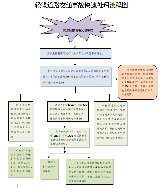 (二)關(guān)于快速處理的流程。《辦法》進(jìn)一步細(xì)化了快速處理的具體流程,對(duì)事故當(dāng)事人在發(fā)生輕微道路交通事故后查驗(yàn)相關(guān)證件、保險(xiǎn)情況,拍攝事故現(xiàn)場(chǎng)照片、保存證據(jù),通過保險(xiǎn)公司或“交管 12123”手機(jī) APP 互聯(lián)網(wǎng)事故在線快速處理系統(tǒng)自行協(xié)商、在線辦理等步驟進(jìn)行了具體要求,交通事故當(dāng)事人按照此流程即可快處處理輕微道路交通事故,及時(shí)撤離現(xiàn)場(chǎng),減少因此事故造成的道路交通擁堵。