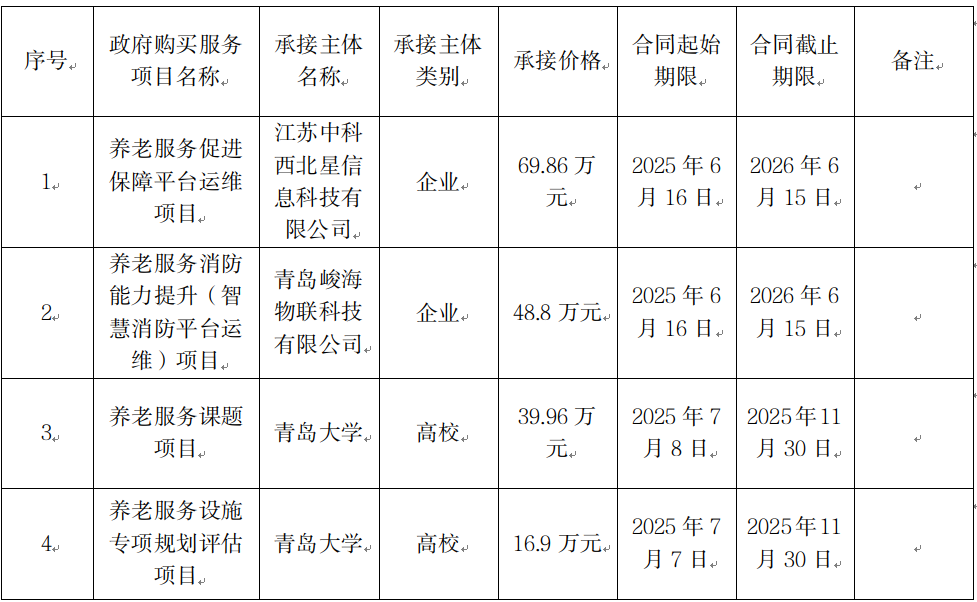 青島市民政局2025年度政府購(gòu)買(mǎi)服務(wù)項(xiàng)目承接主體(養(yǎng)老服務(wù)促進(jìn)保障平臺(tái)運(yùn)維項(xiàng)目等)
