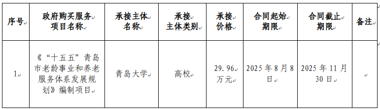 青島市民政局2025年度政府購(gòu)買服務(wù)項(xiàng)目承接主體(《“十五五”青島市老齡事業(yè)和養(yǎng)老服務(wù)體系發(fā)展規(guī)劃》編制項(xiàng)目)