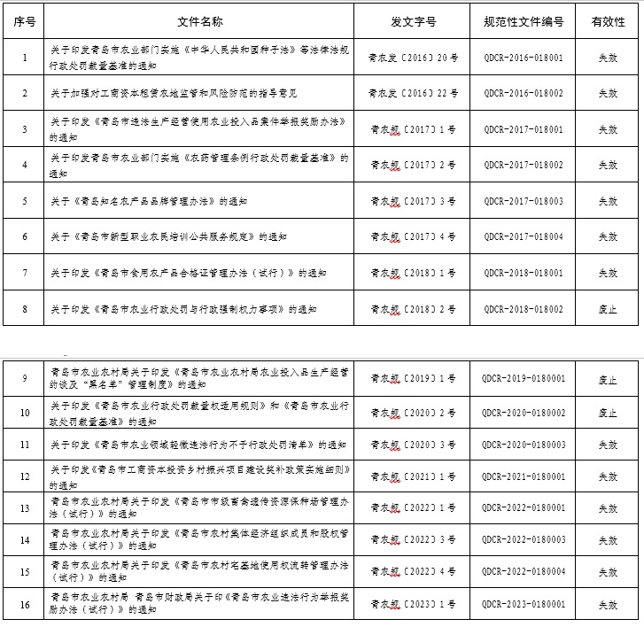 青島市農業(yè)農村局失效和廢止部門行政規(guī)范性文件目錄