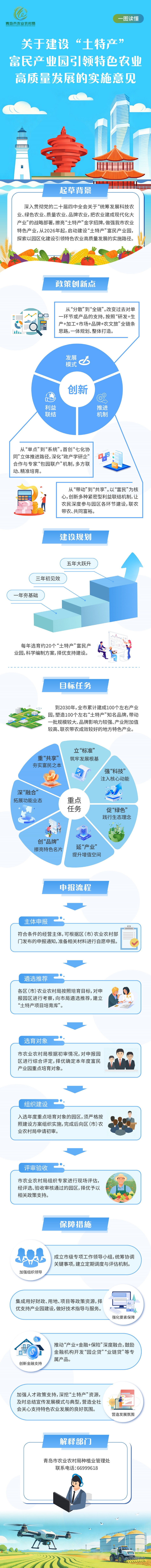 【圖片解讀】一圖讀懂:青島市農(nóng)業(yè)農(nóng)村局關(guān)于建設(shè)“土特產(chǎn)”富民產(chǎn)業(yè)園引領(lǐng)特色農(nóng)業(yè)高質(zhì)量發(fā)展的實(shí)施意見(jiàn)