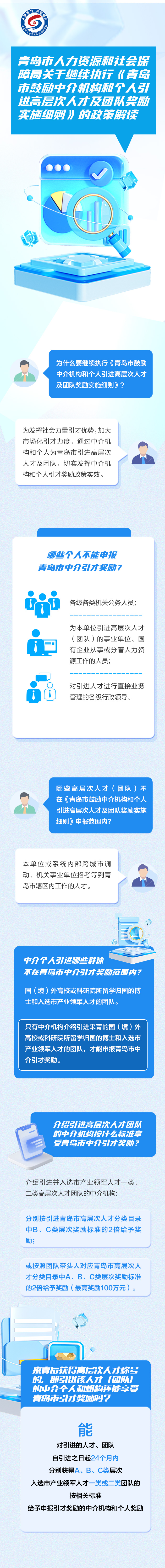 【圖文解讀】青島市人力資源和社會保障局關(guān)于繼續(xù)執(zhí)行《青島市鼓勵中介機構(gòu)和個人引進高層次人才及團隊獎勵實施細則》的政策解讀