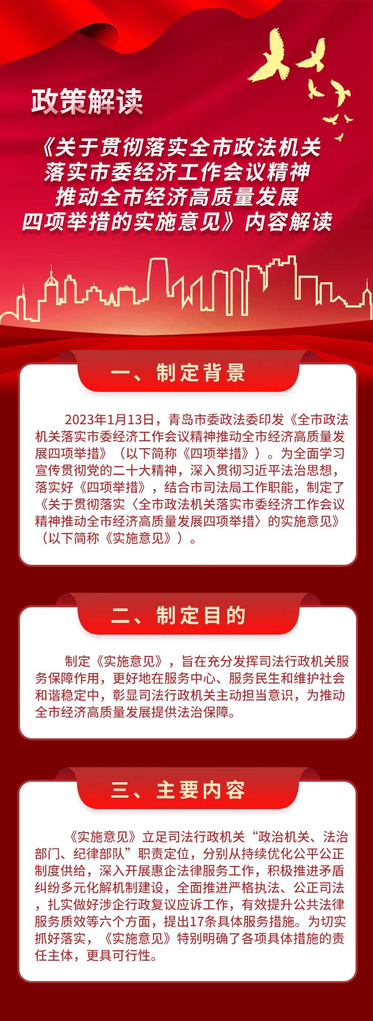 【圖片解讀】《關(guān)于貫徹落實(shí)全市政法機(jī)關(guān)落實(shí)市委經(jīng)濟(jì)工作會(huì)議精神推動(dòng)全市經(jīng)濟(jì)高質(zhì)量發(fā)展四項(xiàng)舉措的實(shí)施意見(jiàn)》內(nèi)容解讀