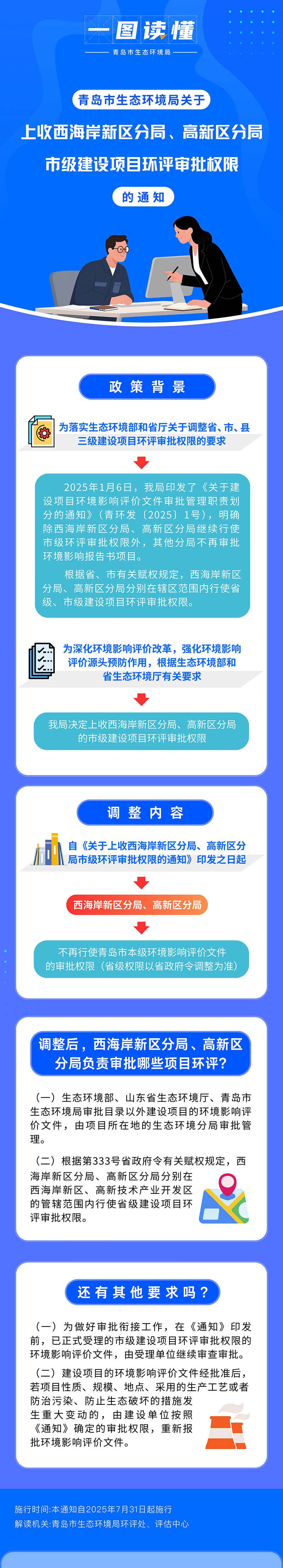 【圖片解讀】青島市生態(tài)環(huán)境局關(guān)于上收西海岸新區(qū)分局、高新區(qū)分局市級建設(shè)項(xiàng)目環(huán)評審批權(quán)限的通知