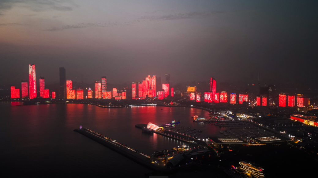市南區(qū)持續(xù)激發(fā)消費(fèi)潛力,開展“好品聚市南精彩消費(fèi)年”等促消費(fèi)活動(dòng),浮山灣燈光秀推出“大美中國(guó)”主題秀及中秋主題秀,與青島風(fēng)光主題等燈光秀編組播放,為市民游客營(yíng)造濃厚的節(jié)慶氛圍?!按竺乐袊?guó)”主題燈光秀分四個(gè)篇章,以綠水青山為底色,伴隨紅綢絲帶飄動(dòng),一幕幕展現(xiàn)祖國(guó)的發(fā)展成就,傳遞大美中國(guó)的家國(guó)情懷。