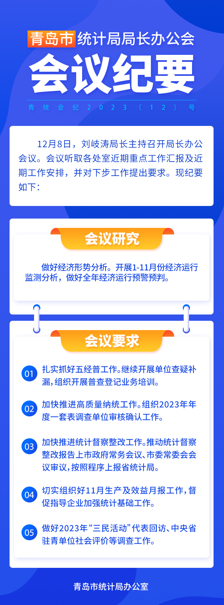 圖解:2023年青島市統(tǒng)計局第12次局長辦公會會議紀(jì)要