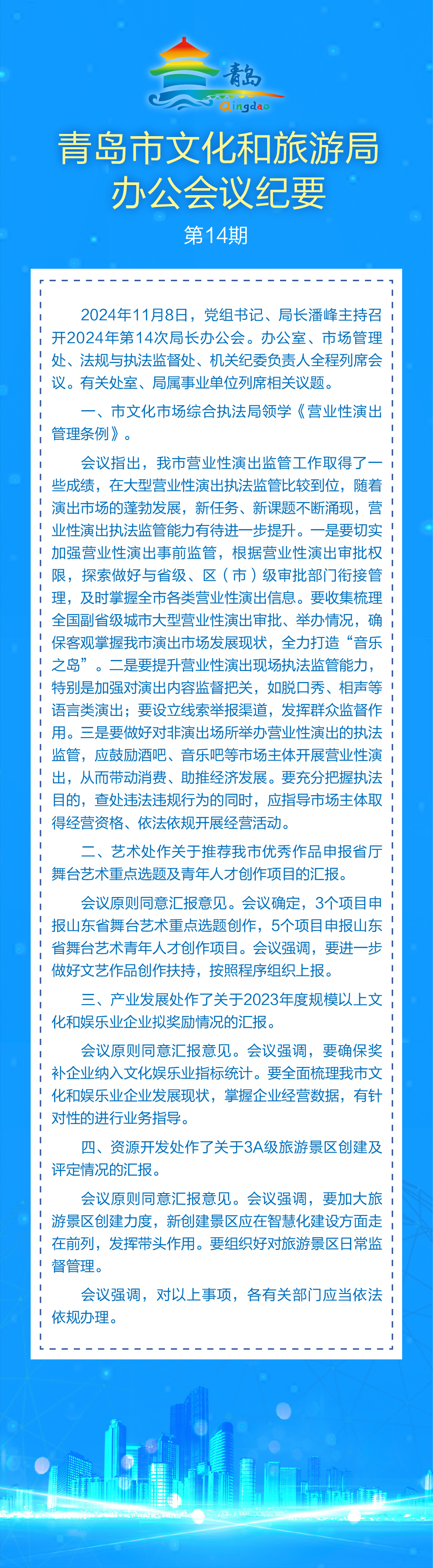 青島市文化和旅游局2024年第14次局長(zhǎng)辦公會(huì)