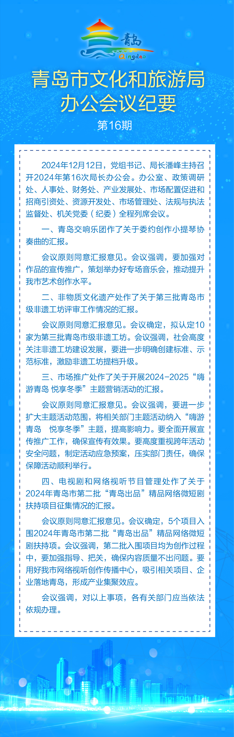 青島市文化和旅游局2024年第16次局長辦公會(huì)