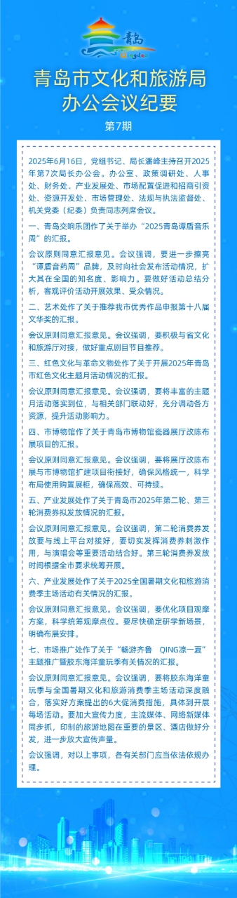 青島市文化和旅游局2025年第7次局長(zhǎng)辦公會(huì)
