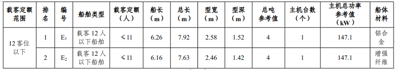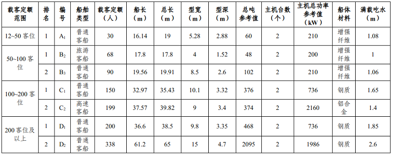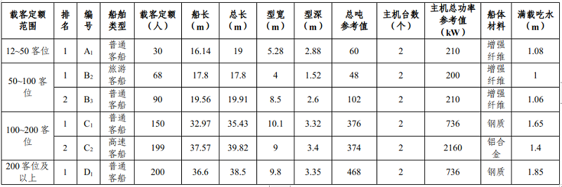 3.7 ?對(duì)載客12人以下船舶經(jīng)綜合調(diào)研進(jìn)行標(biāo)準(zhǔn)化船型推薦。