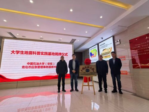 1月30日下午,中國石油大學(xué)(華東)大學(xué)生地震科普實踐基地揭牌儀式在青島防震減災(zāi)市級示范中心舉行。青島市應(yīng)急管理局一級調(diào)研員王海明、石油大學(xué)地球科學(xué)與技術(shù)學(xué)院院長宗兆云及西海岸新區(qū)應(yīng)急局局長沈久波參加儀式,會后就深化合作開展座談。