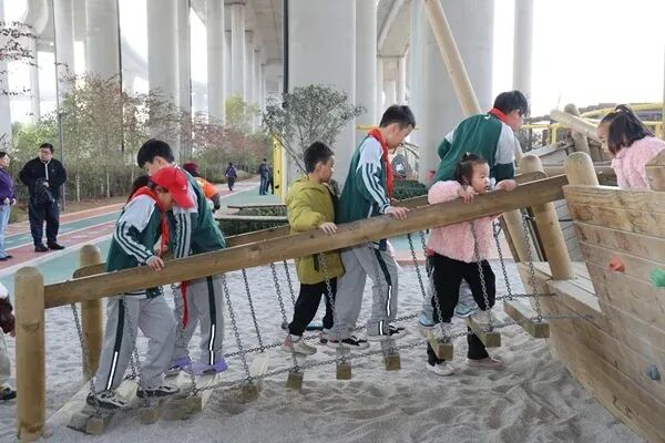 隨后,大家移步至兒童游樂區(qū),盡情體驗瑪利亞號航海船、滑索、蛇形秋千、梁龍爬網(wǎng)、環(huán)島自行車等多種趣味設(shè)施。在盡情玩耍的同時,老師們也不忘時刻提醒大家注意安全,做到自我保護(hù)并關(guān)愛同伴。