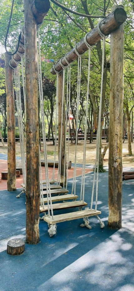 新增的攀爬架是座“反卷訓(xùn)練營(yíng)”,拒絕電子屏幕的“頸椎刺客”,只批發(fā)最原始的快樂:當(dāng)孩子像樹懶抱住樹干般吊在繩索上時(shí),他們肌肉里覺醒的,是遠(yuǎn)古人類幼崽該有的山林記憶。 ?