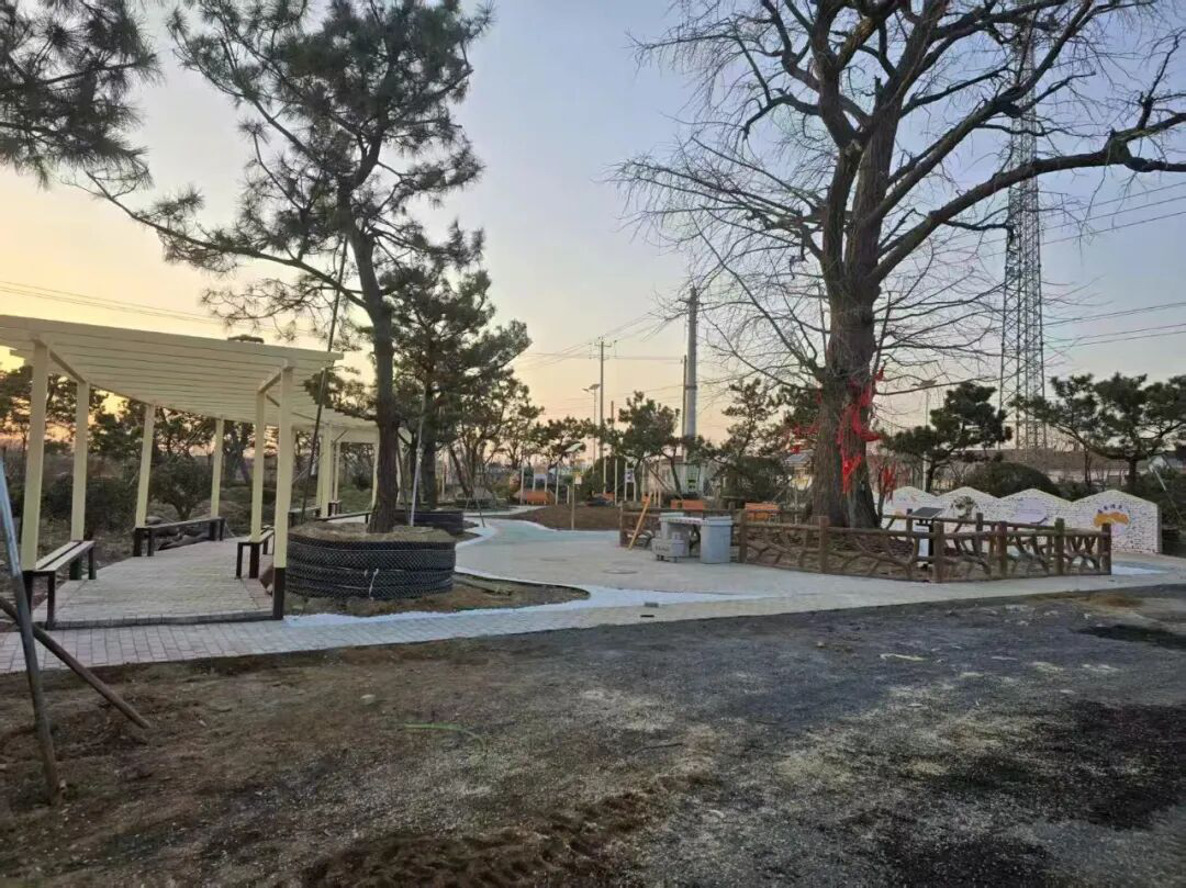 ? ?劉家屯村古樹公園的核心為兩株樹齡150余年的三級古樹(圓柏與側(cè)柏)。針對早年因集市活動導致的土壤板結(jié)、樹體受損等問題,市園林和林業(yè)局于2022年組織專家實施搶救性復壯,通過地下土壤改良、有害生物綜合治理及樹洞仿生修補等科學措施,使古樹重煥生機。2025年3月,公園建設正式啟動,僅用兩個月便完成1134平方米的環(huán)境整治。公園劃分入口區(qū)、科普區(qū)、休憩區(qū)及核心保護區(qū),青石板步道蜿蜒其間,櫻花樹、五角楓等景觀苗木相映成趣,配套的涼亭、休息椅與古樹文化宣傳欄,讓這里成為村民家門口的“休閑客廳”。特別值得一提的是,園區(qū)引入了智慧管護系統(tǒng),安裝太陽能誘蟲燈及遠程監(jiān)測站,實現(xiàn)了古樹健康監(jiān)測與市民休閑游憩功能的有機統(tǒng)一。“以前是雜亂荒地,現(xiàn)在變成漂亮公園,外村人都慕名來參觀! ”65歲的村民劉嬌芝望著枝繁葉茂的古樹,難掩心中喜悅。?